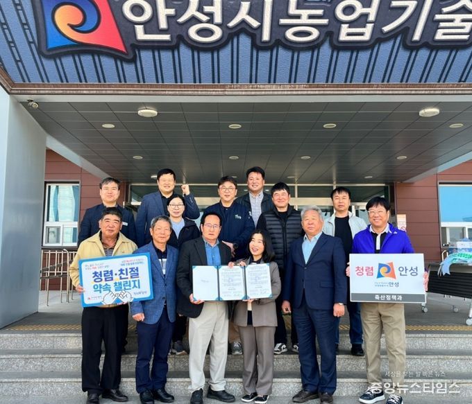 (중앙뉴스타임스 = 방재영 기자) 안성시 농업기술센터 축산정책과가 지역 축산단체들과 손잡고 투명하고 공정한 행정 실현을 위한 '청렴 행보'에 본격적으로 나섰다. 시는 지난 4월 2일, 안성시 축산단체협의회와 함께 청렴 협약식을 개최하고 신뢰받는 축산행정 구현을 위한 협력 기반을 강화했다고 밝혔다.