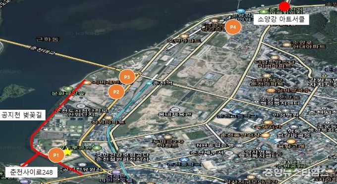 (중앙뉴스타임스 = 방재영 기자) 춘천시가 공지천 벚꽃길과 소양아트서클을 찾는 방문객을 위해 사이로248 임시 주차장을 공영주차장으로 전환한다.