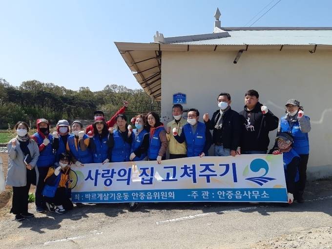 한편 바르게살기위원회는 매년 사랑의 집 고쳐주기와 함께 자선바자회 및 음악회, 환경정화캠페인, 태극기 나눠주기 캠페인, 반찬나눔행사 등 안중읍 일대에서 참 봉사 활동을 실천하고 있다.