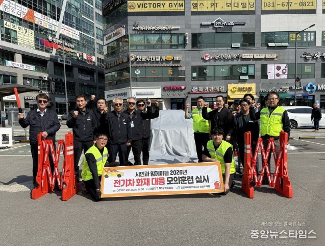 이번 훈련은 전기차 이용 증가에 따른 화재 위험에 대비해 초기 대응 속도와 현장 통제 능력을 집중적으로 점검하는데 목적을 두었으며, 특히 실제 상황과 유사한 조건을 설정하여 대응 절차 전반을 종합적으로 확인하는데 중점을 뒀다.