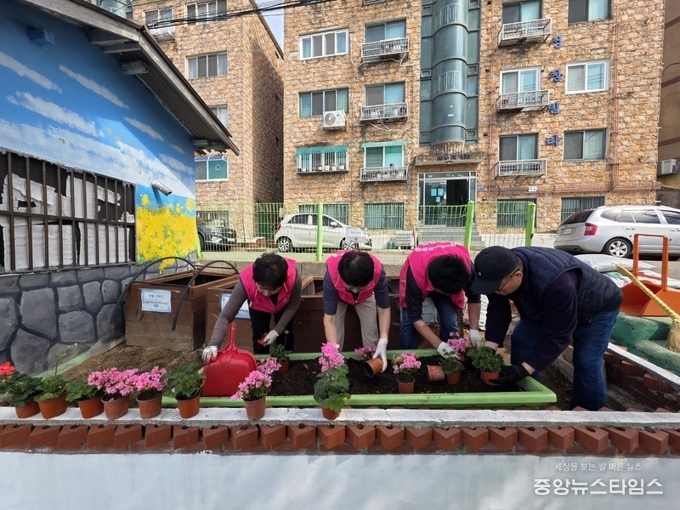 (중앙뉴스타임스 = 방재영 기자) 인천 중구 도원동 지역사회보장협의체(민간위원장 박영자)는 식목일을 맞이해 지난 10일 도원동 복사골 경로당 일원 화단에 제라늄, 방울철쭉, 연산홍을 심는 작업을 실시했다고 밝혔다.