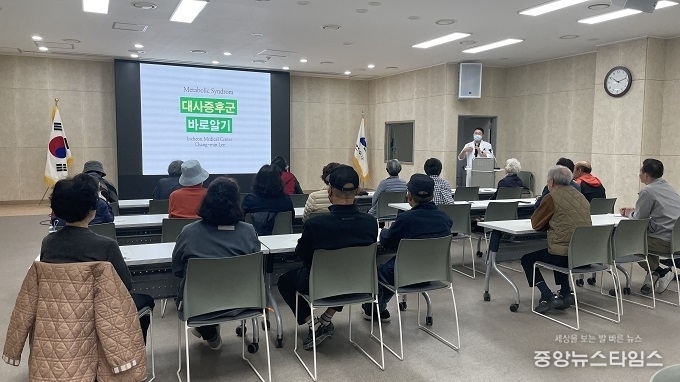 교육 시작 전 기초 건강검사를 통해 주민들의 혈압과 혈당 수치를 확인했고, 강의에서는 대사증후군의 정의, 예방과 관리 방법, 올바른 식습관 교육이 이뤄졌다.