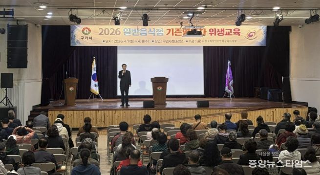 (중앙뉴스타임스 = 방재영 기자) 구리시는 지난 4월 7일부터 8일까지 이틀간 구리시청 대강당에서 사단법인 한국외식업중앙회 경기도북부지회 구리시지부 주관으로 ‘2026년 일반음식점 기존영업자 대상 집합 위생교육’을 실시했다고 밝혔다.