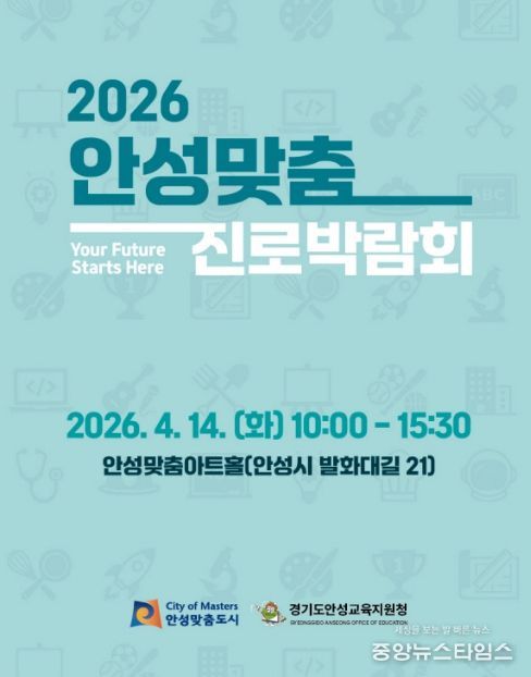 (중앙뉴스타임스 = 방재영 기자) 안성시는 오는 4월 14일 안성맞춤아트홀에서 관내 청소년들의 자기주도적 미래 설계를 지원하기 위한 ‘2026 안성맞춤 진로박람회’를 개최한다고 밝혔다.