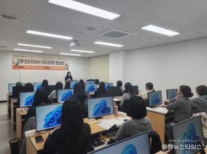 '전사적 자원관리(ERP) 사무원 양성과정'은 김포시 산업 구조와 관내 제조·물류 분야의 인력 수요를 반영한 실무 중심 직업교육훈련으로, 경력 보유 여성의 취업 지원과 경력 단절 예방을 위해 마련됐다.