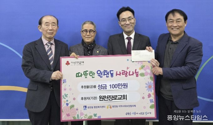 (중앙뉴스타임스 = 방재영 기자) 수원시 영통구 원천동은 지난 10일 원천장로교회가 지역 내 저소득 주민들을 돕기 위해 성금 100만 원을 행정복지센터에 기탁했다고 밝혔다.