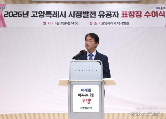 (중앙뉴스타임스 = 방재영 기자) 고양특례시는 지난 9일 고양시 백석별관에서 ‘2026년 고양특례시 시정발전 유공자 표창장 수여식’을 개최하고, 지역 농업 발전에 기여한 후계농업경영인에 표창을 수여했다.