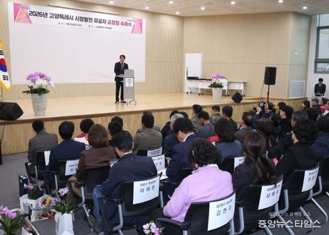 (중앙뉴스타임스 = 방재영 기자) 고양시자원봉사센터는 지역사회 발전을 위해 헌신한 우수 자원봉사자들의 공로를 기리기 위해 ‘2026년 1분기 자원봉사자 표창장 수여식’을 지난 9일 고양시청 백석별관에서 성황리에 개최했다.