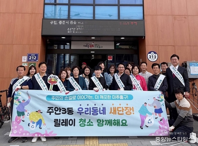 (중앙뉴스타임스 = 방재영 기자) 인천 미추홀구 주안3동 행정복지센터(동장 김윤경)는 지난 13일 주민자치회를 시작으로 ‘우리 동네 새 단장 릴레이 청소 캠페인’을 본격 추진했다고 밝혔다.