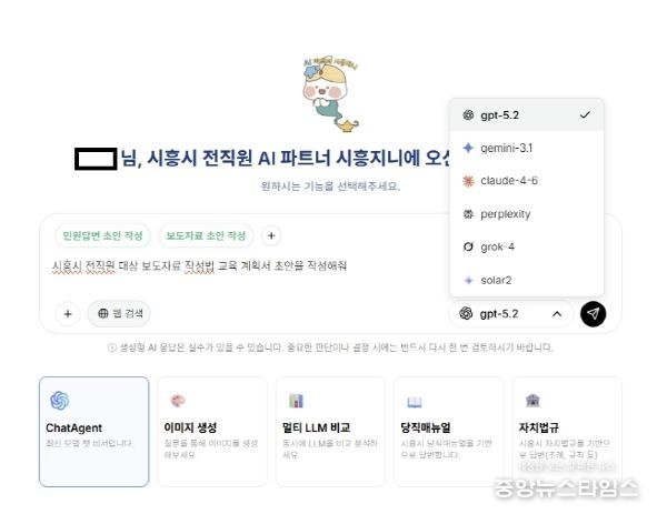 (중앙뉴스타임스 = 방재영 기자) 최근 시흥시 평생학습과 공무원 박씨는 보고서 작성에 소요되는 시간이 크게 줄었다. 통계자료 정리나 기관 대상 발표 자료를 만드는 데에도 자신감이 붙었다. 지난 3월 내부 행정망에 도입된 생성형 인공지능 통합 시스템 ‘시흥지니’ 덕이다.