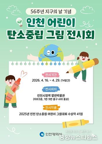 전시장에는 인천 지역 어린이들이 환경 보호와 지구의 미래를 주제로 그린 다양한 작품이 전시되며, 기후 변화, 탄소 저감, 자연 보호 등 다양한 메시지를 어린이들의 시선으로 담아내 관람객에게 새로운 공감과 인식을 전달할 것으로 기대된다.