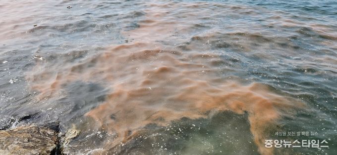 (중앙뉴스타임스 = 방재영 기자) 경기도해양수산자원연구소가 14일 안산 시화나래휴게소 인근 해역에 나타난 주황색 띠 형태를 조사한 결과, 독성이 없는 적조생물 ‘야광충(Noctiluca scintillans)’이 대량 번식한 것으로 확인됐다고 15일 밝혔다.