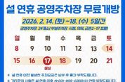 (중앙뉴스타임스 = 방재영 기자) 파주도시관광공사는 12일, 2026년 설 명절을 맞아 시민과 고향을 방문하는 귀성객의 교통편의를 위해 공영주차장 24곳(부설주차장 시청, 의회, 금촌2-17 포함)을 오는 14일(토)부터 18일(수)까지 5일간 무료로 개방한다고 밝혔다. 설 연휴기간 동안 시민들이 안전하고 쾌적하게 주차장을 이용할 수 있도록 사전점검을 마쳤고 효율적인 인력 배치와, 비상연락 체계 유지를 통해 이용 불편을 최소화할 계획이다. 공사 조동칠 사장은 “시민들과 방문객의 주차 불편을 최소화하고, 안전한 시설관리를 통해 편안한 명절 연휴가 될 수 있도록 최선의 노력을 다하겠다”라고 말했다.