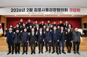 (중앙뉴스타임스 = 방재영 기자) 김포시는 지난 12일 김포시통리장협의회와 2026년 첫 정담회를 개최하고, 지역 사회 가교 역할을 하는 통리장 회장들과 함께 지역 현안을 논의했다. 이 날 정담회에서 김병수 시장과 14개 읍면동 통리장협의회 회장들은 지역 주민들이 현장에서 느끼는 애로 사항을 가감없이 전달했으며, 김병수 시장은 관련 부서에 즉각적인 검토와 피드백을 주문하며 ‘현장 중심 소통 행정’의 의지를 보였다. 이번 행사는 2026년 개최된 첫 정담회로 작년 한 해 고생한 협의회장의 노고를 격려하고, 신임 협의회장을 환영하는 시간이 마련됐다. 행사에서는 정담회 시작에 앞서 그간 협의회를 이끌어 온 허진욱(풍무동) 전 협의회장을 비롯한 6개 전임 지역 회장에게 감사패를 전달하며 지난해 지역사회 발전과 협의회 활성화를 위해 헌신한 노고에 감사의 뜻을 전했다. 허진욱 전 회장은 재임 기간 동안 지역 간 협력 체계를 강화하고 행정과의 원활한 소통을 통해, 주민 의견 전달 창구 역할을 충실히 수행해 왔다는 평가를 받았다. 또한 2026년 김포시통리장협의회를 이끌어갈 신임 회장들에게 “시민의 목소리가 시로 신속하게 전달될 수 있도록 통리장협의회가 지역 소통리더로서의
