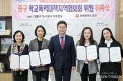 (중앙뉴스타임스 = 방재영 기자) 인천 중구는 ‘학교폭력으로부터 안전한 교육환경 조성’을 위해 ‘학교폭력대책지역협의회’의 신규 위원 4명을 위촉했다고 3일 밝혔다. ‘학교폭력대책지역협의회’는 인천 중구가 학교폭력 예방을 위한 학부모들의 현장감 있는 의견을 수용하고자 운영 중인 협의체로, 이번 신규 위원을 포함해 총 17명이 위원으로 참여하고 있다. 이번에 위촉된 신규 위원은 ▲인천영종고등학교 운영위원 박영희 ▲인천운서중학교 학부모회 김명성 ▲인천영종중학교 학부모회 서경미 ▲인천중산고등학교 학부모회 전영아 총 4명의 학부모다. 이들 신규 위원은 앞으로 지역사회 기반의 협력체계를 바탕으로 학교폭력 예방 활동과 청소년 보호 정책 논의에 참여하게 된다. 한편, 위촉식은 지난 2일 오후 제2청사(영종구 임시청사) 구청장실에서 진행됐다. 특히 김정헌 중구청장과 위원들은 협의회의 운영 방향과 역할은 물론, 지역 청소년의 건강한 성장환경 조성을 위한 다양한 의견을 공유하는 시간을 가졌다. 중구는 앞으로도 관계기관, 지역 주민과의 긴밀한 협력을 통해 학교폭력 예방 체계를 단단히 다지고, 대응 역량을 지속 강화해 나갈 방침이다. 김정헌 구청장은 “학교폭력은 지역사회가 함께 고