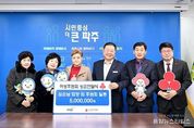 (중앙뉴스타임스 = 방재영 기자) 파주시는 11일 여성후원회로부터 관내 저소득 취약계층 지원을 위한 성금 500만 원을 기탁 받았다고 밝혔다. 전달식에는 김경일 파주시장을 비롯해 심순남 여성후원회 1대 회장, 김나경 여성후원회 부회장과 권인욱 경기사회복지공동모금회장 및 관계자들이 참석했다. 전달받은 성금은 경기사회복지공동모금회를 통해 경제적 어려움을 겪는 파주시 저소득 주민을 위해 사용할 예정이다. 심순남 여성후원회 1대 회장은 “지역의 어려운 이웃을 돕는 것이 우리 모임의 사명이라 생각하고, 앞으로도 파주시 나눔 문화를 실천하며 지역사회 발전에 기여하겠다”라고 말했다. 김경일 파주시장은 “여성후원회의 숭고한 정신을 바탕으로 따뜻한 후원에 깊이 감사드리며 관내 어려운 이웃을 위한 복지사업에 소중히 사용하겠다"라고 전했다.