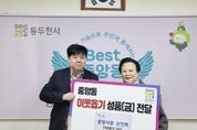 (중앙뉴스타임스 = 방재영 기자) 동두천시 중앙시장 상인회는 지난 10일 설을 맞아 이웃돕기 성금 30만 원을 중앙동 행정복지센터에 전달했다고 밝혔다. 중앙시장 상인회는 중앙동의 어려운 이웃을 위해 꾸준히 나눔을 실천해오고 있으며, 이번 성금 역시 취약계층 지원에 사용될 예정이다. 오하순 회장은 “어려운 시기를 보내는 이웃에게 작은 온기를 전하고자 했다”라며 “지역 주민들이 따뜻한 겨울을 보내는 데 보탬이 되기를 바란다”라고 말했다. 양웅식 중앙동장은 “취약계층을 위해 지속적으로 나눔을 실천해 주시는 상인회에 감사드린다”라며 “앞으로도 지역 공동체와 함께 따뜻한 나눔 문화를 이어가겠다”라고 전했다.