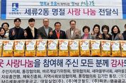 (중앙뉴스타임스 = 방재영 기자) 수원시 권선구 세류2동은 지난 11일 설 명절을 맞아 사랑 나눔 전달식을 개최했다. 이날 마련된 후원 물품은 취약계층 약 379 가구에 직접 전달될 예정으로 지역사회에 사랑이 전해지는 명절이 될 것으로 기대된다. 이번 전달식에는 세류2동 주민자치회, 통장협의회, 새마을부녀회, 새마을문고, 바르게살기위원회, 자유총연맹, 체육진흥회, 방위협의회, 지역사회보장협의체 등 9개 단체의 단체장과 ㈜대일실업, ㈜광신이 참여했다. 이와 함께 MG세화새마을금고, ㈜에코월드, 영광광고기획 등 지역 내 여러 기관과 개인 후원자의 사랑 나눔도 더해져 행사에 의미를 더했다. 변영호 세류2동장은 “어려운 시기에 지역사회 관심으로 사랑 나눔에 참여해 주신 단체(기관)에 감사드리며, 앞으로도 유관 기관과 적극 협력으로 행복과 웃음이 피어나는 정겨운 세류2동을 만들기 위해 최선을 다하겠다”라고 말했다.
