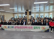(중앙뉴스타임스 = 방재영 기자) 삼척시는 16일 삼척시농업기술센터에서 제19회 삼척농업인대학 입학식을 개최하고 전문농업인 양성을 위한 교육의 막을 올렸다. 삼척농업인대학은 2008년 4월 설립 이후 과수·채소 과정 등을 운영하여 지금까지 1,035명의 졸업생을 배출했다. 올해 삼척농업인대학은 사과기초반, 사과심화반 두 과정이 개설되어 총 80명의 교육생이 입학한다. 입학식은 개회와 내빈 소개로 시작하여 기념촬영 후 한국안전원(주) 최원석 과장이 ‘농업인 안전보건’을 주제로 특강을 진행했다. 삼척농업인대학은 3월부터 11월까지 과정별 70시간 이상 운영되며, 삼척사과 주산지인 하장면의 농업인들이 농사일과 학업을 병행할 수 있도록 ‘찾아가는 출장교육’ 형식으로 진행된다. 교육 과정 중에는 현장견학을 1회 실시해 우수사례를 벤치마킹하고 교육생들의 만족도를 높일 계획이다. 시 관계자는 “이번 교육을 통해 지역농업을 선도하는 전문농업인을 양성하여 삼척사과 경쟁력 제고 및 농업소득 증대에 기여할 수 있도록 최선을 다하겠다”고 말했다.
