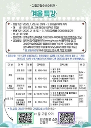 (중앙뉴스타임스 = 방재영 기자) 강화군청소년수련관이 오는 28일~30일, 겨울방학을 맞아 겨울 특강 참가자를 모집한다. 이번 프로그램은 ▲초등 요리 ▲공예 교실 ▲코딩이 내 손안에 ▲중고등 요리 ▲반려동물 소품 만들기 등으로 구성된다. 프로그램은 2월 14일~3월 7일까지 진행되며, 교육 대상은 관내 초중고 등 청소년이라면 누구나 무료로 참여할 수 있다. 신청은 네이버 폼을 활용하거나, 공단 홈페이지에서 회원가입 후 인터넷 접수(선착순 모집)를 통해 가능하다. 청소년수련관 관계자는 “겨울방학 동안 청소년들이 의미 있고 안전하게 시간을 보낼 수 있도록 다양한 프로그램을 준비했다”며, “강화군 청소년들의 많은 관심과 참여를 바란다”고 전했다. 겨울 특강과 관련한 기타 자세한 내용은 강화군시설관리공단 홈페이지를 확인하거나, 청소년수련관으로 문의하면 된다.