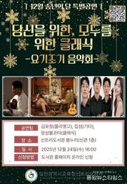 (중앙뉴스타임스 = 방재영 기자) 인천시교육청신트리도서관은 오는 24일 오후 4시 신관 1층 봄누리에서 ‘당신을 위한, 모두를 위한 클래식’ 공연을 개최한다고 5일 밝혔다. 이번 공연은 연말을 맞아 지역주민이 함께 소통하고 정서적 안정을 찾을 수 있는 따뜻한 시간을 마련하기 위해 기획됐다. 공연은 인천문화재단 ‘요기조기음악회’ 공모사업에 선정된 프로그램으로 △클래식과 플라멩코를 기반으로 한 핑거스타일 연주자 김유정의 ‘나그네의 계절’ △집섬의 자작곡 중심 무대 ‘여행 스케치’ △앙상블 코타의 ‘당신을 위한, 모두를 위한 코탈래식!’ 등 세 팀이 연주를 선보인다. 참여 신청은 12월 8일부터 신트리도서관 누리집에서 가능하며, 문의는 마을교육지원과로 하면 된다.