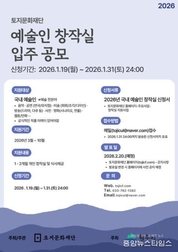 (중앙뉴스타임스 = 방재영 기자) 토지문화재단은 예술인들이 창작활동에 전념할 수 있도록 올해 토지문화관 예술인 창작실 입주 희망자를 오는 31일까지 공개 모집한다고 23일 밝혔다. 토지문화재단은 박경리 작가가 1996년 설립한 재단이다. 1999년 토지문화관 개관 이후 문학과 예술 전 분야 창작자를 위한 창작공간 지원사업을 지속하고 있다. 2001년 문인을 시작으로, 2004년 국내 예술인, 2007년 국외 예술인, 2023년에는 장애 예술인까지 대상을 확대하며 국내외 문화예술 창작 환경 조성에 기여해 왔다. 특히 지난해에는 문인 33인, 국내 예술인 15인, 국외 예술인 6인 등 총 54인의 예술인에게 창작실을 제공해 안정적인 창작 여건을 지원함으로써 문화예술계 활성화에 이바지했다. 이번 모집 대상은 공연(연극·뮤지컬 등), 미술(회화·조각·디자인 등), 방송(드라마, 다큐멘터리 등), 사진, 영화(시나리오, 연출 등), 음악, 웹툰 등 문화예술 전 분야에서 활동 중인 국내 예술인이다. 선정된 예술인에게는 최소 1개월에서 최대 2개월까지 창작공간을 제공한다. 입주는 3월부터 10월까지 가능하다. 입주를 희망하는 예술인은 1월 31일까지 재단 홈페이지에서 신