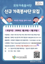 (중앙뉴스타임스 = 방재영 기자) 고양특례시 건강가정지원센터에서는 오는 2월 25일까지 2026년 ‘가족봉사단’참여자를 모집한다. 가족봉사단은 고양시 건강가정지원센터에서 지속적으로 진행해온 사업으로, 가족단위 참여자들이 월 1회 봉사활동에 참여함으로써 가족 간, 이웃 간 마음을 나누는 사업이다. 참여 조건은 고양시에 거주하는 2인 이상 가족으로, 막내 자녀가 초등학교 3학년 이상이어야 한다. 2월 28일 일산서구청에서의 발대식을 시작으로, 3월부터 매월 둘째 주 토요일 관내 장애인시설인‘고양 천사의 집’에서 봉사활동을 진행할 예정이다. 신청은 센터 누리집(홈페이지)에서 가능하며, 봉사활동 참여자는 자원봉사시간 인증이 가능하다.
