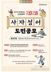 (중앙뉴스타임스 = 방재영 기자) 강원특별자치도는 2026년 병오년(丙午年) 새해를 앞두고, 도정 운영 방향에 대한 도민의 바람을 담은 ‘올해의 사자성어’를 도민 공모를 통해 선정한다고 7일 밝혔다. 이번 공모는 지난해에 이어 추진되는 것으로 도정 운영에 대한 도민 관심을 높이고, 도민과 함께 ‘미래산업글로벌도시’ 비전을 만들어가는 소통행정을 강화하기 위한 취지이다. 지난 해에는 총 167건의 제안이 접수됐으며, 최종 심사를 거쳐 개신창래가 선정되어 2025년도 공식 신년화두로 활용된 바 있다. 공모기간은 12월 8일부터 14일까지 진행되며, 강원특별자치도에 주민등록을 둔 도민이면 누구나 참여할 수 있다. 내용은 새해 도정 방향과 의지를 함축적으로 표현하는 사자성어로 도민 누구나 공감할 수 있는 의미의 문구면 된다. 1인 1건 응모만 가능하며, 최근 5년간 선정된 신년화두와 동일한 내용은 심사 대상에서 제외된다. 참여를 원하는 도민은 도청 및 시‧군청 홈페이지에서 공고문을 확인한 후, 제안 신청서를 작성해 도 정책기획관실 공모 담당자 이메일로 제출하면 된다. 도는 접수된 제안을 대상으로 12월 중 1차 실무심사와 2차 위원회 심사를 거쳐 최종 선정할 예정이며