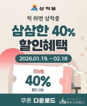 (중앙뉴스타임스 = 방재영 기자) 삼척시는 설 명절을 맞아 지역 농특산물과 우수 제품을 합리적인 가격에 제공하기 위해 삼척시 대표 온라인 쇼핑몰 ‘삼척몰’에서 '2026 삼척몰 설맞이 기획전'을 진행한다고 22일 밝혔다. 이번 설맞이 기획전은 2월 18일까지 운영되며, 삼척몰 회원을 대상으로 다양한 할인 혜택을 제공할 예정이다. 기획전 기간 동안 삼척몰 회원 고객을 대상으로 최대 40% 할인 쿠폰이 발행된다. 할인 쿠폰은 기획전 기간 중 매주 화요일 오전 10시에 선착순으로 발급되며, 삼척몰에 접속해 직접 쿠폰을 내려받아 사용할 수 있다. 또한, 2025년도 구매 실적 기준 우수 고객을 대상으로 감사 쿠폰을 별도로 지급한다. 우수 고객에게는 시군몰 회원 ID로 쿠폰이 지급되며, 문자 안내를 통해 개별적으로 안내할 계획이다. 참여를 희망하는 시민은 삼척몰 누리집에접속해 해당 기간 내 쿠폰을 발급받아 기획전 상품을 구매하면 된다. 삼척시는 “이번 설맞이 기획전을 통해 시민들이 삼척의 우수한 농특산물과 각종 제품을 보다 저렴하고 편리하게 구매할 수 있을 뿐만 아니라, 지역 농가와 소상공인의 매출 확대에도 큰 도움이 될 것으로 기대하고 있다”고 말했다.