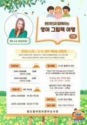 (중앙뉴스타임스 = 방재영 기자) 인천 동구는 꿈드림어린이영어도서관에서 오는 18일부터 ‘원어민과 함께하는 영어 그림책 여행(1기)’ 수강생을 선착순으로 40명 모집한다고 12일 밝혔다. 모집 첫날인 18일에는 동구 주민을 대상으로 우선 접수를 진행하며, 19일부터는 거주지 제한 없이 누구나 신청할 수 있다. 신청은 도서관 홈페이지를 통한 온라인 접수로 진행된다. 해당 강좌는 도서관 소장 영어 그림책을 엄선해 원어민 교사와 함께 읽고, 노래 부르기, 활동지, 만들기, 놀이 등 다양한 독후 활동을 함께 진행하는 독서 교육 프로그램이다. 참여 대상은 2016년생~ 2021년생까지이며, 연령대에 따라 두 개 반으로 나누어 각 반별로 1시간씩 수업이 진행된다. 수강료는 전액 무료이다. 또한 어린이영어도서관 운영 프로그램 세부 일정 및 안내 사항은 도서관 홈페이지 또는 인스타그램확인할 수 있으며, 기타 자세한 사항은 꿈드림어린이영어도서관으로 문의하면 된다. 김찬진 동구청장은 “아이들이 어린이영어도서관의 다양한 자료를 활용하며 영어를 자연스럽게 접하고 즐겁게 배울 수 있는 좋은 기회가 될 것”이라며 “앞으로도 아이들이 안전하고 즐겁게 성장할 수 있는 교육·문화 환경을