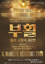 (중앙뉴스타임스 = 방재영 기자) 원주시립교향악단과 시립합창단은 오는 12일 오후 7시 30분 백운아트홀에서 정기연주회 ‘부활’을 개최한다고 9일 밝혔다. 이번 연주회는 시립교향악단 정주영 상임지휘자의 지휘 아래, 원주와 강릉 시립합창단이 협연해 말러 교향곡 제2번 ‘부활’을 선보인다. 부활은 구스타프 말러가 1888년부터 1894년까지 작곡한 대규모 교향곡으로, 인간 존재의 의미와 죽음, 부활에 대한 깊은 성찰을 담아내며 인간 존재의 재탄생과 영적 부활을 향한 여정을 그려낸 작품이다. 이번 무대에는 소프라노 서선영과 메조소프라노 정수연이 솔로 파트로 출연해 대규모 피날레를 펼쳐 극적인 감동을 선사할 예정이다.