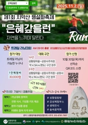 (중앙뉴스타임스 = 방재영 기자) 환경과 생태, 그리고 지역 고유의 설화를 함께 즐길 수 있는 제1회 치악산 꿩설화 축제 ‘은혜갚을런’이 오는 11월 2일 원주시 신림면 성림체험학습장 일원에서 개최된다. 성황림마을생태관광협의회가 주관하는 이번 축제는 2025년 생태 관광 지역으로 지정된 성황림과 성황림마을을 널리 알리고, 지역의 문화·생태 자원을 활용한 지속 가능한 관광모델을 만들기 위해 마련됐다. 축제의 핵심 프로그램인 은혜갚을런 러닝대회는 1구간(약 4.5㎞)이 성황림마을에서 상원사 주차장까지, 2구간(약 6.9㎞)이 상원사까지 완주하는 코스로 운영된다. 또한 은혜 갚은 꿩 설화 퍼포먼스, 성황림 숲 탐방, 생태 전시·체험, 숲속 음악회, 완주 인증자 경품 추첨 등 다채로운 부대행사도 준비돼 있다. 특히 이번 축제 기간에는 평소 성황제 기간(연 2회)에만 개방되는 성황림 숲에서 생태 탐방 프로그램이 운영된다. 탐방은 오전 11시와 오후 2시 두 차례에 걸쳐 전문 숲해설가와 함께 진행된다. 체험 신청은 10월 30일까지 시 홈페이지 등에 게시된 안내문의 큐알(QR)코드를 통해 접수하며, 선착순 200명 한정이다. 체험비는 1인당 3만 원이다. 성황림마을생태