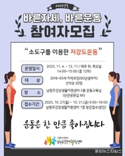 (중앙뉴스타임스 = 방재영 기자) 남원주건강생활지원센터는 다음 달 4일부터 지역 주민을 대상으로 건강생활실천 프로그램 ‘바른자세, 바른운동’을 운영한다고 20일 밝혔다. 이번 프로그램은 생활 습관 개선 및 건강생활실천 강화를 통해 건강생활실천의 중요성에 대한 인식을 제고하고, 만성질환 예방을 돕기 위해 마련됐다. 프로그램은 대면 교육으로 운영되며, 11월 4일부터 12월 11일까지 매주 화요일과 목요일 오후 2시부터 3시까지 센터 2층 운동교육실에서 진행된다. 모집 인원은 20∼65세 원주시민 선착순 20명이며, 10월 27일부터 31일까지 센터를 방문해 신청할 수 있다. 센터 관계자는 “이번 과정이 지역 주민의 근골격계 질환 예방과 건강 증진에 큰 도움이 되길 바란다”라며, “앞으로도 관련 프로그램을 지속적으로 마련하겠다”라고 말했다.