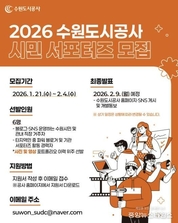(중앙뉴스타임스 = 방재영 기자) 수원도시공사가 다음 달 4일까지 2026년도 제8기 시민 서포터즈를 모집한다고 21일 밝혔다. 수원시민과 수원 지역 직장인이면 신청 가능하며, 개인 블로그 및 SNS 등을 운영하거나 공공기관 서포터즈 경력자는 우대한다. 특히 사진, 영상(쇼츠·릴스) 등 이미지 활용에 대한 전문 지식이 있는 지원자에게는 가산점 부과된다. 올해 모집인원은 모두 6명이다. 선발된 서포터즈에는 소정의 원고료를 매달 지급하며, 원활한 활동을 위해 서포터즈 신분증·명함 등도 제공된다. 발표는 다음 달 9일이며, 자세한 내용은 공사 홈페이지 및 SNS(블로그·인스타그램·페이스북)를 참조하면 된다. 공사는 시민 소통 강화와 정보 전달 등을 위해 지난 2019년부터 시민 서포터즈를 운영하고 있다. 이영인 사장은 “공사의 소식을 SNS를 통해 발 빠르게 전해줄 시민 서포터즈에 많은 지원 바란다”라고 말했다.