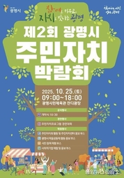 (중앙뉴스타임스 = 방재영 기자) 광명시가 오는 25일 광명시민체육관 잔디광장에서 ‘제2회 광명시 주민자치박람회’를 개최한다고 20일 밝혔다. 이번 행사는 주민자치회 활동 성과를 시민과 공유하며 자치의 가치를 확산하고, 시민이 직접 참여해 마을의 변화를 만들어 가는 소통과 체험의 장으로 마련됐다. 박승원 광명시장은 “이번 박람회는 주민이 직접 참여해 마을의 변화를 이끌어가는 자리”라며 “시민이 중심이 되어 자치의 가치를 실현하는 과정이 광명시의 풀뿌리 민주주의를 더욱 풍성하게 만들 것”이라며 시민들의 적극적인 참여를 독려했다. 행사는 오전 10시 30분 팝페라 가수 ‘볼라레’의 식전 공연으로 시작해 주민자치 활성화 유공 표창, 박람회 개막 퍼포먼스 등으로 행사의 막이 오른다. 각 동 주민자치회와 마을공동체가 운영하는 ▲주민자치 전시한마당 ▲주민자치 페스티벌 부스 ▲마을공동체 홍보·체험 부스와 9개 사회적기업이 참여하는 ▲사회적경제 나눔장터 등 다양한 프로그램이 하루 종일 잔디광장 곳곳에서 펼쳐질 예정이다. 시민들은 ‘주민참여·탄소중립·세대화합·예술마을’을 주제로 운영하는 각 동의 전시·체험 부스에서 주민자치 활동을 체험하고, 큐알(QR)코드 평가와 스탬프 투