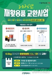 (중앙뉴스타임스 = 방재영 기자) 고양특례시 덕양구 창릉동은 주민들의 자원 재활용 참여를 확대하고 올바른 분리배출 문화를 정착시키기 위해 ‘2026년 재활용품 교환사업’을 운영한다고 밝혔다. 재활용품 교환사업은 생활 속에서 쉽게 실천할 수 있는 환경보호 활동으로, 주민들의 자발적인 참여를 유도해 재활용률을 높이고 깨끗한 마을 환경을 조성하는 데 목적이 있다. 주민들이 가정에서 발생하는 폐건전지, 종이팩, 투명 페트병 등 재활용 가능 자원을 모아 행정복지센터에 가져오면 무게를 측정해 0.5kg당 종량제 봉투(10L) 1장으로 교환해 주는 방식으로 진행된다. 사업은 3월부터 운영을 시작했으며 평일 근무시간 내 교환 물품 소진 시 조기 종료될 수 있다. 김미정 창릉동장은 “이번 재활용품 교환사업을 통해 주민들이 자원순환의 중요성을 체감하고 분리배출에 더욱 적극적으로 참여하는 계기가 되길 바란다.”며 “앞으로도 주민들과 함께하는 다양한 환경보호 활동을 지속적으로 추진하겠다.”고 말했다. 창릉동은 이번 사업을 통해 주민들의 환경 의식을 높이고, 지역사회가 함께 실천하는 친환경 문화를 확산해 나갈