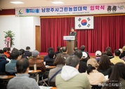 (중앙뉴스타임스 = 방재영 기자) 남양주시의회는 11일 농업기술센터 3층 대강당에서 열린 2026년 남양주시그린농업대학 입학식에 참석해 신입생들에게 축하의 인사를 전했다. 이날 행사는 조성대 의장을 비롯해 주광덕 남양주시장과 동문회원, 입학생 등이 참석한 가운데 개회식을 시작으로 △학사운영 경과보고 △입학선서△교표 수여 △입학식사 △축사 및 환영사 순으로 진행됐다. 조성대 의장은 축사에서“예측하기 어려운 기후와 치열해진 시장 경쟁 등 농업의 환경이 빠르게 변하고 있어 여러분이 선택하신 배움의 과정들은 더욱 큰 의미가 있을 것으로 생각되며, 농사와 배움은 한 번에 완성되지 않으므로 한걸음 한걸음 서로 경험을 나누며 성장하시기 바란다”고 말했다. 이어 “남양주시의회도 농업 현장의 목소리가 정책과 예산으로 이어지고, 배움이 교육으로만 머무르지 않고 실습과 판로, 창업과 소득으로 자연스럽게 연결될 수 있도록 필요한 지원을 꼼꼼히 살피겠다”고 전했다. 한편, 이번 제21기 남양주시 그린농업대학은 기후변화 및 농업 환경 변화에 대응할 전문 농업인과 미래 농업 인재를 양성하기 위한 교육 프로그램 중심으로 운영되며, 이번에 입학한 105명의 입학생들은 △기후적응농업 △스마