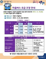 (중앙뉴스타임스 = 방재영 기자) 안양시는 경기도의 시내버스 요금 인상에 따라 오는 11월 1일 첫차부터 마을버스 요금이 인상된다고 22일 밝혔다. 이번 인상에 따른 교통카드 기준 마을버스의 요금은 ▲일반 1,350원→1,650원(300원 인상) ▲청소년 950원→1,160원(210원 인상) ▲어린이 680원→830원(150원 인상)이다. 11월 1일부터 안양시 관할 마을버스 노선에 일괄 적용된다. 안양시는 경기도 전역의 일반형 시내버스 요금이 이달 25일부터 교통카드 기준 현재 1,450원에서 1,650원으로 인상됨에 따라 시내버스와의 요금 형평성을 유지하고, 마을버스 운송업체의 경영 안정과 지속 가능한 대중교통 서비스 제공을 위한 불가피한 조치라고 설명했다. 특히, 그동안 시는 마을버스 요금을 2019년부터 인근 시보다 100원 낮게 유지해 왔으나, 최근 인건비 상승, 차량 유지비 및 유류비 등 운송원가 증가로 업체의 경영난이 가중돼 인상이 결정됐다고 덧붙였다. 시 관계자는 “요금 인상과 함께 배차시간 단축, 노선 개편 등 대중교통 서비스의 품질 향상과 운영 효율화를 지속적으로 추진해 시민의 교