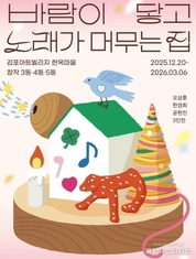 (중앙뉴스타임스 = 이광운 기자) (재)김포문화재단은 연말연시를 맞아 가족의 온기와 새해의 희망을 담은 하반기 기획전시 '바람이 닿고 노래가 머무는 집'을 12월 20일부터 2026년 3월 6일까지 김포아트빌리지 한옥마을 창작 3·4·5동에서 개최한다고 밝혔다. 이번 전시는 ‘집’이라는 상징을 통해 한 해를 성찰하고 다가올 새해의 행복을 기원하는 시민참여형 전시로, 공현진·오상훈·한경희 작가가 조각, 패브릭, 미디어, 설치 작업을 선보인다. 이번 전시에서 세 명의 작가는 동시대 예술의 언어로 새로운 한해, 새로운 여정을 준비하는 이들에게 서로 다른 방식의 머무름을 건넨다. 공현진 작가는 한국의 무속과 민간신앙을 바탕으로 새해를 맞이하는 마음을 조각에 담아 전통과 현재를 이어내는 새로운 기원의 자리를 마련한다. 오상훈 작가(문화지형연구소 씨티알)는 각자가 지닌 걱정을 털어놓고 서로 교환하며 위로를 얻는 참여형 작업 '걱정교환소'를 소개한다. 한경희 작가는 실과 천 조각들을 이어붙여 겹치고 얽힌 천의 질감 속에서 자연의 풍경을 떠올리며 놀이처럼 즐기는 감각적 체험을 제공한다. 한편, 이번 전시에는 전시 감상을 넘어