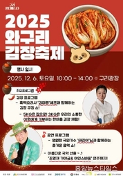 (중앙뉴스타임스 = 이광운 기자) 구리시상권활성화재단은 오는 12월 6일 구리광장에서 ‘2025 와구리 김장축제’를 개최한다고 밝혔다. 이번 축제는 ‘경기도 상권 친화형 도시 조성 공모사업’ 선정으로 추진되는 ‘구리 윈터페스타’의 첫 번째 행사로, 지역 농산물 소비 촉진, 전통문화 체험, 이웃돕기 나눔 실천을 주요 가치로 삼아 시민 누구나 참여할 수 있는 겨울 축제로 마련됐다. 축제의 하이라이트인 김장 체험은 시민들이 직접 김치를 담가보는 프로그램으로 진행되며, 흑백요리사로 큰 인기를 얻고 있는 이모카세 김미령 한식 요리사의 지도로 구리시새마을회, 구리 도시공사, 무지개합창단 등 지역 자원봉사자들이 함께해 김장을 처음 접하는 시민들도 손쉽게 전통 김치를 완성할 수 있도록 도울 예정이다. 이날 담근 김치의 일부는 관내 홀로 어르신, 다문화가정 등 취약계층에 전달돼 시민이 직접 참여하는 연말 나눔 활동으로 따뜻한 의미를 더한다. 또한 축제장을 찾은 시민들을 위해 트로트 가수 태진아의 공연, 가야금 영재 조영재 & 아인스바움 윈드 챔버 연주 등 풍성한 무대 프로그램과 지역 소상공인 먹거리 부스, 다양한