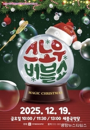 (중앙뉴스타임스 = 이광운 기자) 여주세종문화관광재단은 '문화가 있는 날' 사업의 올해 마지막 무대로 19일 세종국악당에서 ‘스노우 버블쇼’를 선보인다. ‘스노우 버블쇼’는 하얀 눈과 투명한 비눗방울이 어우러진 신비로운 겨울 동화를 콘셉트로 한 체험형 공연으로 비눗방울을 중심으로 영상과 음악, 퍼포먼스를 결합해 아이들의 상상력을 자극한다. 마술사의 손짓에 따라 펼쳐지는 다채로운 버블과 드라이아이스 연출은 동화 속 장면을 현실로 옮긴 듯한 분위기를 만들어 공연에 함께할 1,000여 명의 여주시 어린이들에게 특별한 경험을 선사한다. 무대에는 ‘코리아 갓 탤런트’, ‘놀라운 대회 스타킹’, ‘생생정보통’ 등 다양한 TV 프로그램과 광고 등을 통해 대중에게 얼굴을 알린 국내 최초 컬러 버블 아티스트 버블S가 오른다. 화려한 비눗방울 연출에 관객과의 즉흥적인 소통을 엮어 무대를 밀도 있게 이끌어 간다. 여주세종문화관광재단 이순열 이사장은 “올해 문화가 있는 날의 마무리는 눈처럼 순수한 어린이 관객들을 위해 준비했다.”라며 “비눗방울이라는 친숙한 소재를 통해 아이들이 공연장을 낯설지 않은 공간으로 기억하고, 예술을 즐겁게 만나는 행복한 경험이 되길 바란다.”라고 전했다