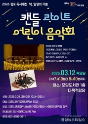 (중앙뉴스타임스 = 이광운 기자) 김포시 도서관은 2026 김포 독서대전의 시작을 알리는 공연으로 '캔들 라이트 어린이 음악회'를 오는 3월 12일 19시 10분부터 20시 10분까지 모담도서관 1층 다목적강당에서 진행한다고 20일 밝혔다. 봄빛이 스며들듯 1200~1300개의 LED캔들을 켜고 앙상블 여운팀이 디즈디 메들리와 지브리 메들리, 어린이들이 따라 부를 수 있는 인기 동요를 연주한다. 또한 공연이 끝나면 '모아봐요 스탬프북'을 배포하여 올해 김포시 도서관에서 진행하는 독서문화진흥 프로그램을 참여 후 스탬프를 모아 2026 김포 독서대전 행사에서 활용할 수 있도록 안내한다. 도서관 관계자는 “이번 공연은 2026 김포 독서대전을 알리고, 어린이와 가족들이 도서관에서 다양한 독서 활동과 행사를 참여 할 수 있도록 응원하는 자리로, 김포시 도서관은 올해 독서대전 슬로건 '책, 일생의 기쁨'에 맞게 전 연령층이 함께할 수 있는 독서문화진흥 프로그램을 기획할 예정”이라고 말했다. 참여 신청은 2026년 2월 24일 10시부터 김포시 통합예약 누리집 (모집/행사)에서 진행한다.