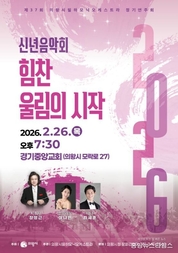 (중앙뉴스타임스 = 이광운 기자) 의왕시가 오는 26일 오후 7시 30분 경기중앙교회(모락로 27)에서 '제37회 의왕시필하모닉오케스트라 정기연주회'를 개최한다. 이번 공연은 2026년 새해를 맞아 ‘힘찬 울림의 시작’을 주제로 시민과 함께 희망과 도약의 메시지를 나누고, 지역 문화예술의 저변 확대와 문화적 자긍심을 높이기 위해 마련됐다. 이날 무대에서는 장명근 지휘자가 이끄는 의왕시필하모닉오케스트라가 깊이 있는 오케스트라 사운드를 선보일 예정이다. 또한 소프라노 여나현, 테너 하세훈이 함께 출연해 수준 높은 협연 무대를 펼친다. 연주 프로그램은 드보르자크의 '카니발 서곡'을 시작으로, 레하르의 '내 입술, 그 입맞춤은 뜨겁고', 푸치니의 '오 사랑하는 나의 아버지', 아구스틴 라라의 '그라나다', 카르딜로의 '무정한 마음' 등으로 친숙한 성악곡이 이어진다. 특히, 드보르자크 교향곡 제9번'신세계로부터'에서는 전 악장을 연주하며 웅장하고 감동적인 무대를 선사할 예정이다. 마지막으로 베르디의 '축배의 노래'를 통해서는 희망찬 새해의 분위기를 한층 고조시킬 계획이다. 공연은 별도의 예매 없이 선착순 무료 관람으로 진행되며, 관람객은 천주교수원교구 제2대리구청 주
