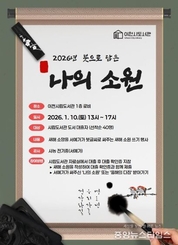 (중앙뉴스타임스 = 이광운 기자) 이천시립도서관은 2026년 병오년 새해를 맞아 시민의 한 해 소망과 다짐을 서예가가 붓글씨로 써주는 '2026년 붓으로 담은 ‘나의 소원’' 행사를 오는 10일 오후 1시부터 5시까지 시립도서관 1층 책마당 로비에서 운영한다고 7일 밝혔다. 이번 행사는 새해를 맞아 시민이 자신의 소망을 한 문장으로 정리하는 계기를 제공하고, 전문 서예가의 붓글씨를 통해 전통문화의 아름다움을 일상 속에서 자연스럽게 경험할 수 있도록 기획됐다. 참여 시민이 작성한 새해 소원 문장은 서예가가 현장에서 직접 붓글씨로 써서 제공한다. 행사는 별도의 사전 신청 없이 현장 참여로 진행되며, 이천시민 및 시립도서관 도서 대출자를 대상으로 선착순 40명이 참여할 수 있다. 참여를 희망하는 시민은 도서관 자료실에서 도서를 대출한 후 대출 확인증을 지참해 행사에 참여하면 된다. 이천시 김은미 도서관과장은 “이번 행사를 통해 도서관이 책을 읽는 공간을 넘어 시민의 생각과 마음을 기록하는 생활문화 공간으로 자리매김하는 계기가 되길 기대한다”고 밝혔다.