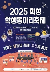 (중앙뉴스타임스 = 이광운 기자) 화성특례시는 오는 11월 1일 낮 12시부터 저녁 7시 30분까지 동탄호수공원 일대에서 ‘2025 화성학생동아리축제’를 개최한다고 29일 밝혔다. ‘꿈꾸는 별들의 축제, 우주를 줄게’를 슬로건으로 열리는 이번 행사는 화성시가 주최하고, 화성시인재육성재단(대표이사 임선일) 교육협력지원본부가 주관하며, 청소년이 직접 기획부터 운영까지 참여하는 자율기획형 축제로 마련됐다. 축제는 ▲청소년 동아리들의 밴드·보컬 공연이 펼쳐지는 ‘공연존(스타 플래닛)’ ▲신나는 랜덤플레이댄스를 즐길 수 있는 ‘댄스파티존(댄스 플래닛)’ ▲시민이 함께 참여할 수 있는 체험형 부스로 구성된 ‘부스존(플레이 플래닛)’ ▲다양한 먹거리를 만날 수 있는 ‘푸드트럭존(냠냠 플래닛)’ 등 4개 구역으로 운영된다. 특히 공연존에서는 전문 MC와 청소년 MC가 함께 사회를 맡고, 청소년 밴드와 보컬 공연은 물론, 뮤지컬 배우 박완의 축하공연도 예정돼 있어 풍성한 볼거리를 선사할 예정이다. 축제 전 과정을 준비한 ‘학생축제기획위원회(총 43명)’는 지난 6월부터 5차례의 워크숍을 통해 축제 콘셉트 기획, 공간 구성, 무대 큐시트 작성, 홍보 콘텐츠 제작 등 전반적인