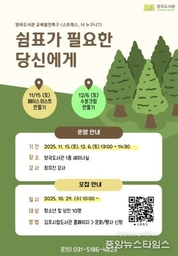 (중앙뉴스타임스 = 이광운 기자) 김포시 양곡도서관은 지역주민의 심리적 힐링과 자기계발을 지원하기 위해 11월 15일과 12월 6일 두 차례에 걸쳐 ‘쉼표가 필요한 당신에게’ 강의를 운영한다. 이번 프로그램은 페이스 미스트 만들기와 수분크림 만들기 실습을 통해 참가자들에게 맞춤형 웰빙 지식을 전달하고 자기관리 역량을 향상할 수 있도록 구성됐다. 다양한 연령과 배경의 지역주민들이 함께 참여해, 공동체 내 소통과 정서적 유대 강화 및 도서관의 평생교육 기능을 확대하는 계기를 마련한다. 강의는 한국아로마요가협회장 최유진 강사가 진행하며, 10월 29일(수) 오전 10시부터 김포시도서관 홈페이지를 통해 선착순으로 신청할 수 있다. 양곡도서관 관계자는 “지역주민의 다양한 문화욕구를 반영한 프로그램을 계획했다”며, “이번 프로그램을 계기로 도서관이 지역사회 통합을 위한 장이 되길 기대한다”고 밝혔다.