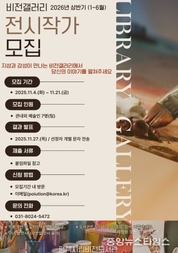 (중앙뉴스타임스 = 이광운 기자) 평택시립 비전도서관에서는 관내․외 예술가와 신진 작가에게 폭넓은 전시 기회를 제공하고, 시민들이 예술을 보다 가까이에서 누릴 수 있는 기회를 제공하고자 오는 11월 4일부터 21일까지 2026년 상반기 비전갤러리 전시 작가를 모집한다. 비전갤러리는 비전도서관 1층 로비에 마련된 약 80㎡ 규모의 열린 문화공간으로, 시민들이 일상에서 예술을 자연스럽게 접하고 즐길 수 있도록 마련됐다. 2026년 상반기부터는 개인전 및 협업전(최대 3인)으로 개편해 운영되며 다양한 작가들의 예술작품을 선보일 예정이다. 참여 작가들은 전시뿐 아니라 해설사와 체험 프로그램을 통해 시민과 직접 소통하며, 작품에 담긴 예술적 의미와 창작 과정을 공유하는 시간을 갖게 된다. 이를 통해 시민들은 단순한 관람을 넘어 예술을 직접 경험하고 참여하는 문화적 기회를 얻게 된다. 신청 자격은 18세 이상으로, 관내․외 예술인과 신진 작가 모두에게 열려 있다. 전시 기간은 3주이며(작품 설치와 철수 기간 포함) 한국화, 서양화, 사진, 서예, 공예, 조각 등 예술 분야라면 누구나 신청할 수 있다. 선정된 작가에게는 전