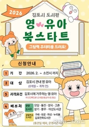 (중앙뉴스타임스 = 이광운 기자) 김포시가 새해를 맞아 관내 영·유아들의 올바른 독서 습관 형성과 생애 첫 독서 경험을 지원하는 ‘2026년 북스타트(Bookstart)사업’을 추진한다고 23일 밝혔다. ‘북스타트’는 아이들에게 그림책 꾸러미를 선물해 책과 친해지는 계기를 만들고, 독서를 통한 부모와의 정서적 교감을 돕는 지역사회 문화운동 프로그램이다. 올해 지원 대상은 김포시에 주소를 둔 0개월부터 취학 전까지의 영·유아이며, 나이에 따라 1단계 북스타트(0~18개월), 2단계 북스타트 플러스(19개월~36개월), 3단계 북스타트 보물 상자(37개월~취학 전)로 맞춤형 그림책 꾸러미를 무료로 배부한다. 꾸러미 수령은 관내 공공도서관 7개소(모담·통진·양곡·고촌·장기·풍무·마산)와 공립 작은 도서관 5개소(누리봄·대곶·구래·하성·김포 만화)에서 가능하다. 보호자가 신분증과 주민등록등본(3개월 이내 발급분)을 지참하고 가까운 도서관을 방문하면 된다. 배부 기간은 2월부터 12월까지이나, 꾸러미 소진 시 조기 종료될 수 있다.