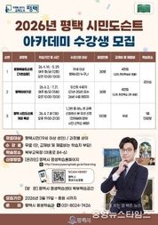 (중앙뉴스타임스 = 이광운 기자) 평택시는 2026년 ‘평택 시민도슨트 아카데미’ 학습자를 3월 19일부터 4월 6일까지 모집한다고 밝혔다. ‘평택 시민도슨트 아카데미’는 평생학습과 문화예술교육을 접목해 시민이 평택을 이해하고, 시민 눈높이에서 지역을 해설할 수 있는 문화예술교육 활동가로 성장하도록 돕는 사업이다. 이번 아카데미는 ▲개강특강 ▲문화예술도슨트(기초입문) 과정 ▲평택이야기꾼 과정 등 3개 과정으로 운영된다. ‘평택 시민도슨트 아카데미’의 시작을 알리는 ▲개강특강은 4월 7일(화) 오후 7시부터 평생학습센터 북부학습공간 1층 대강당에서 열린다. 이창용 도슨트를 초청해 ‘평택은 예술이다. 나도 시민도슨트!’를 주제로 도슨트의 역할과 지역을 예술로 바라보는 관점을 소개할 예정이다. ▲‘문화예술도슨트(기초입문) 과정’은 4월 14일부터 총 12회로 운영되며, 동서양미술사와 현대미술의 핵심을 이해하고 전시 해설의 기초를 익히는 과정으로, 1회는 미술관 현장학습으로 진행된다. ▲‘평택이야기꾼 과정’은 6월 2일부터 총 15회로, 초등학교 3학년 사회과 지역화 교과인 ‘우리 고장 평택’을 바탕으로 지역 문화유산 답사 등 현
