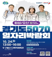 (중앙뉴스타임스 = 이광운 기자) 경기도와 경기도일자리재단은 오는 24일 구봉산 다목적체육관에서 중장년층을 위한 ‘2025 경기도 5070 일자리박람회 in 화성+오산’를 개최한다고 21일 밝혔다. 이번 박람회는 경기도가 주관하는 시군 순회형 일자리 박람회 ‘경기 5070 그레잇잡투어(Gray it-job tour)’의 일환으로 마련됐다. ‘그레잇잡투어’는 중장년층을 상징하는 ‘그레이(Gray)’, 주목받는다는 의미의 ‘잇(It)’, 일자리를 찾아가는 ‘잡 투어(Job Tour)’의 의미를 담은 합성어로, 50~70대 중장년층이 자신만의 경력을 살려 새로운 인생 2막을 설계할 수 있도록 지원하는 여정을 의미한다. 이번 박람회에는 25개의 지역 우수 기업이 직접 참여해 현장 채용 부스를 운영하며, 중장년 구직자들과 일대일 면접을 진행한다. 아울러 현장 참여가 어려운 30여 개 기업은 채용게시대를 통해 공고를 게시하고 구직자가 제출한 이력서를 대신 접수해 기업에 전달하는 방식으로 참여함으로써, 총 60여 개 기업이 채용에 나서는 효과를 거둘 전망이다. 이 외에도 오산시일자리센터, 화성시일자리센터 등 지역 일자리 유관기관이 함께해 구직자들에게 다양한 취업 지원 상